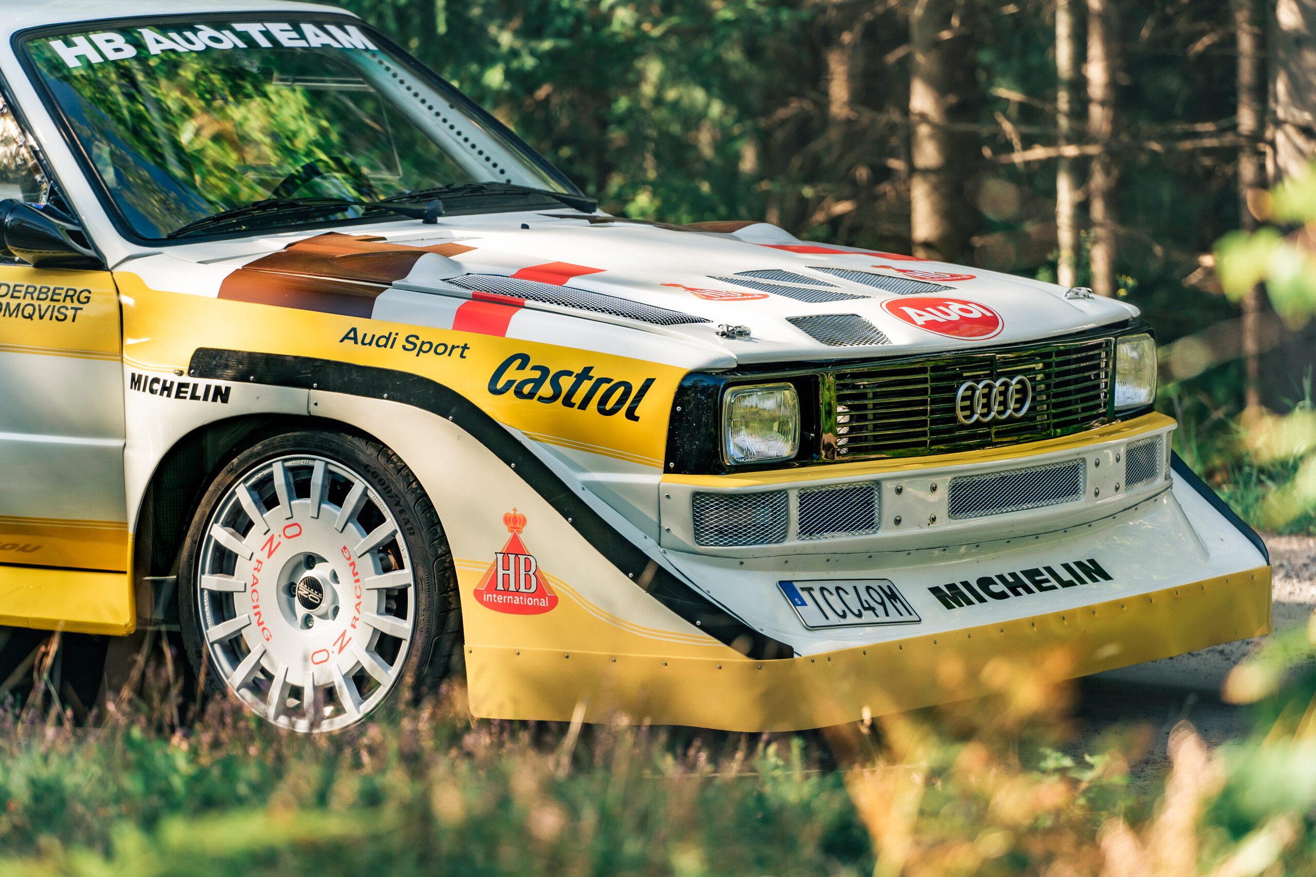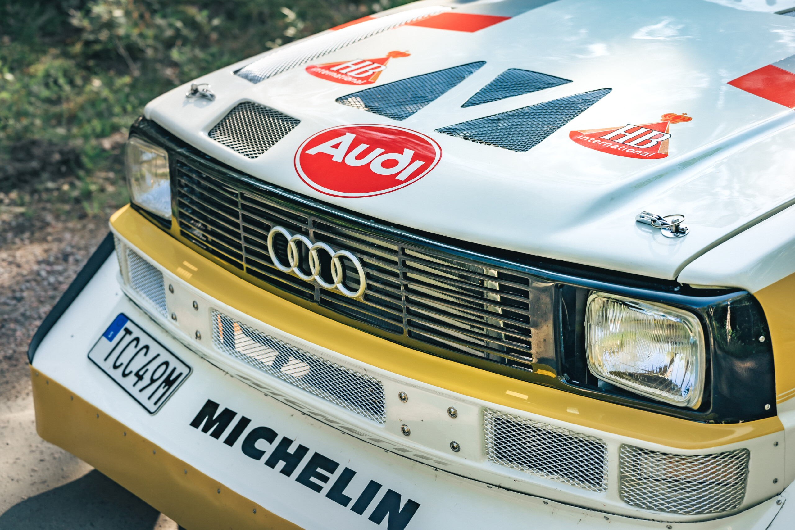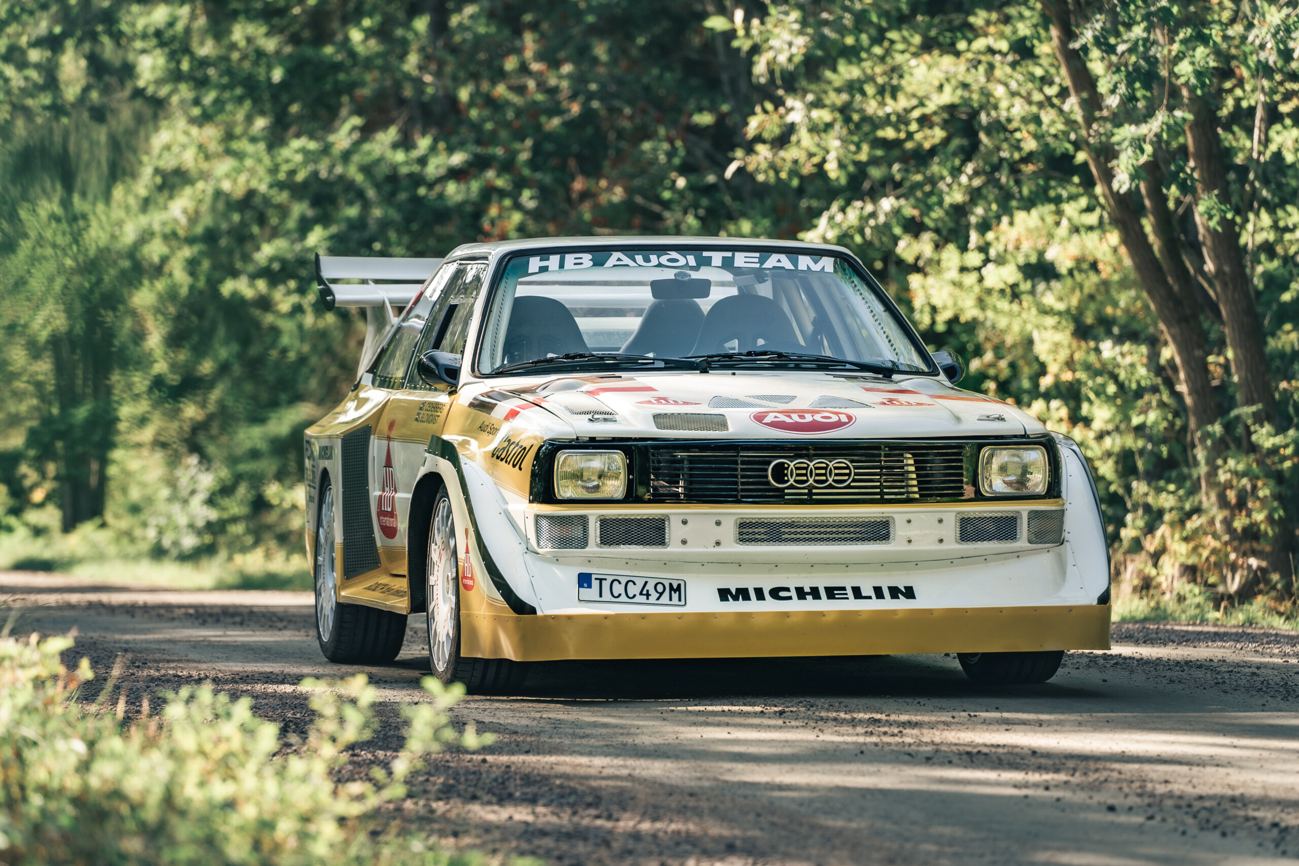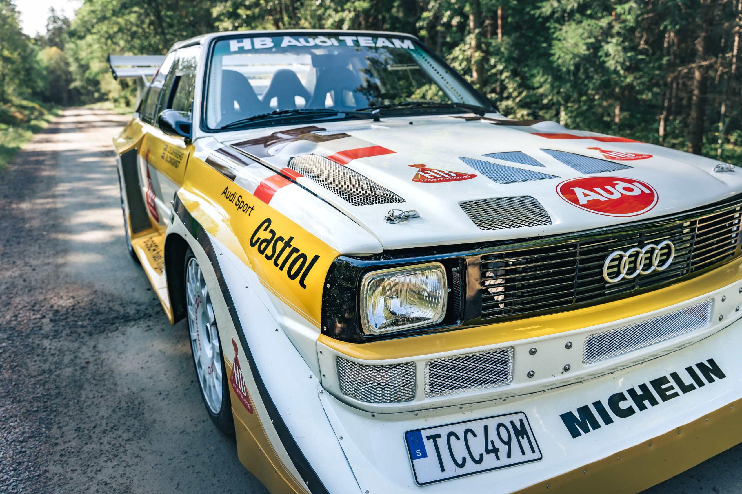 At the 1985 Rally Finland, Audi debuted the Audi Sport Quattro S1 Evo2, instantly recognizable by its aggressive wide fender flares, massive front spoiler, and large rear wing.