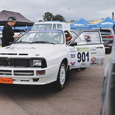 Audi quattro lanserades 1980 och är en av Audis största succéer genom tiderna. I dagligt tal brukar bilen kallas Urquattro. Bilens tävlingsutförande är byggt av Per Johansson och Joel Christoffersson. Rallyförare som kör bilen i veteranbilsrallyn: Oscar Svedlund