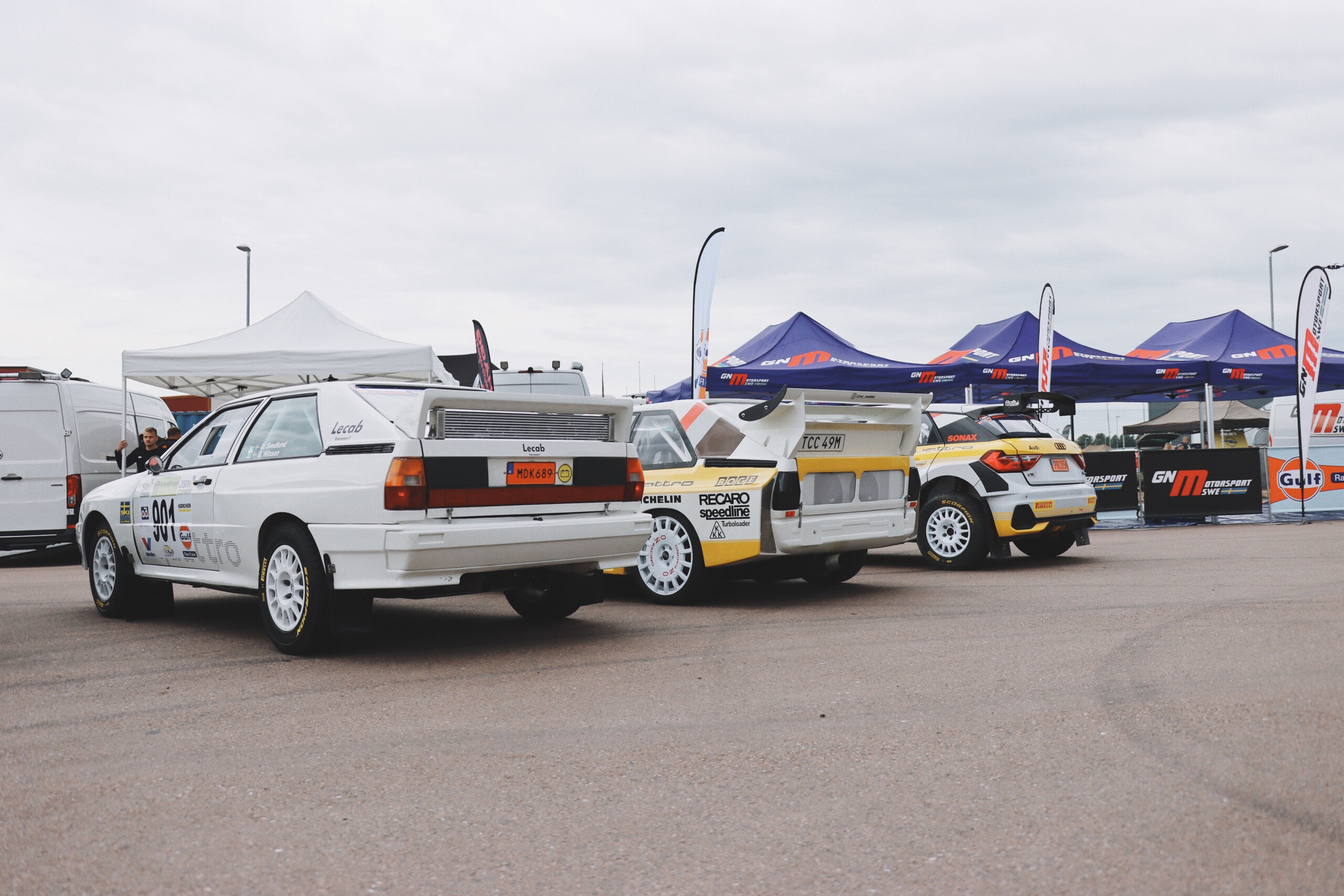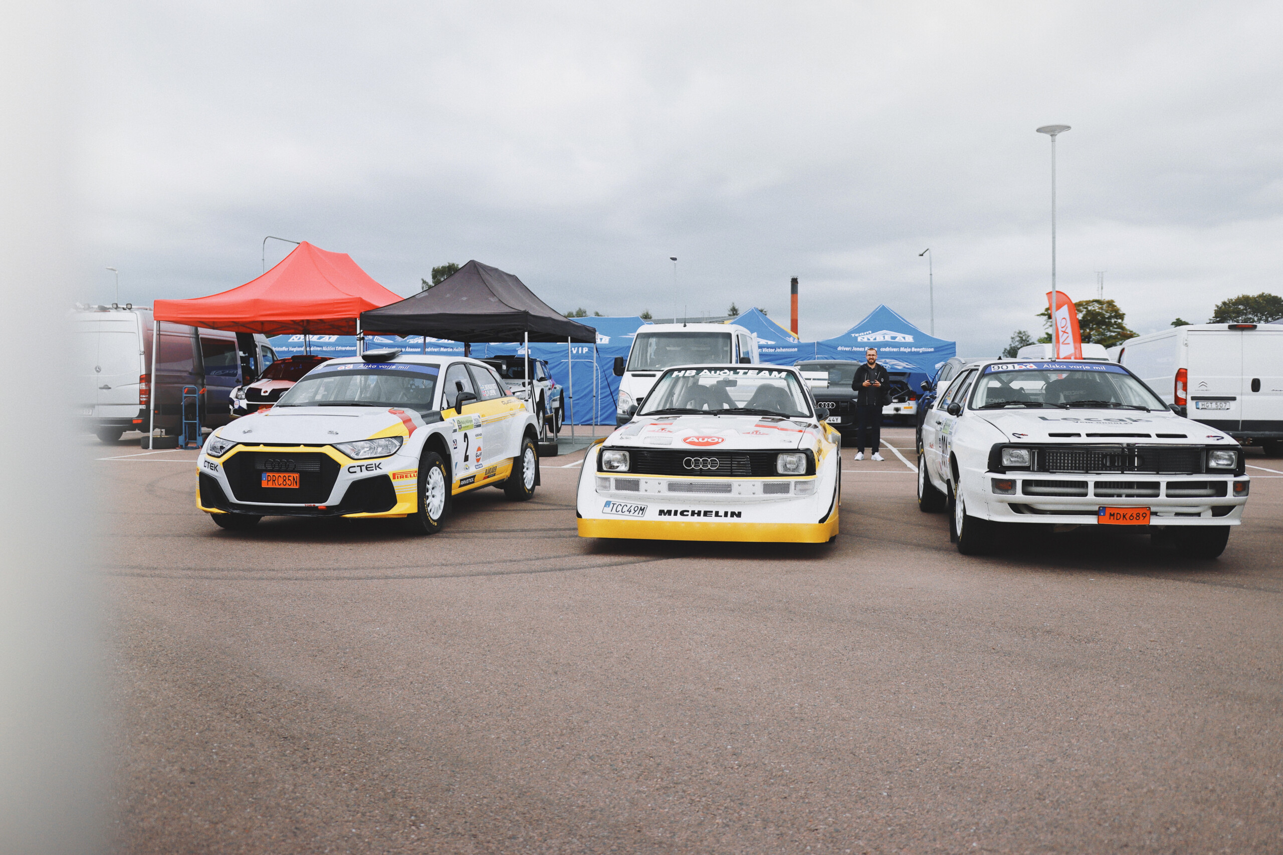 Audi quattro lanserades 1980 och är en av Audis största succéer genom tiderna. I dagligt tal brukar bilen kallas Urquattro. Bilens tävlingsutförande är byggt av Per Johansson och Joel Christoffersson. Rallyförare som kör bilen i veteranbilsrallyn: Oscar Svedlund